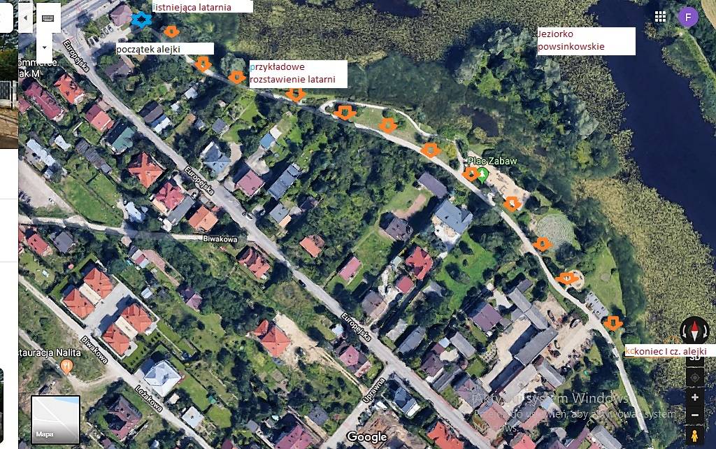 BO — oświetlenie alejki spacerowej nad Jeziorkiem Powsinkowskim