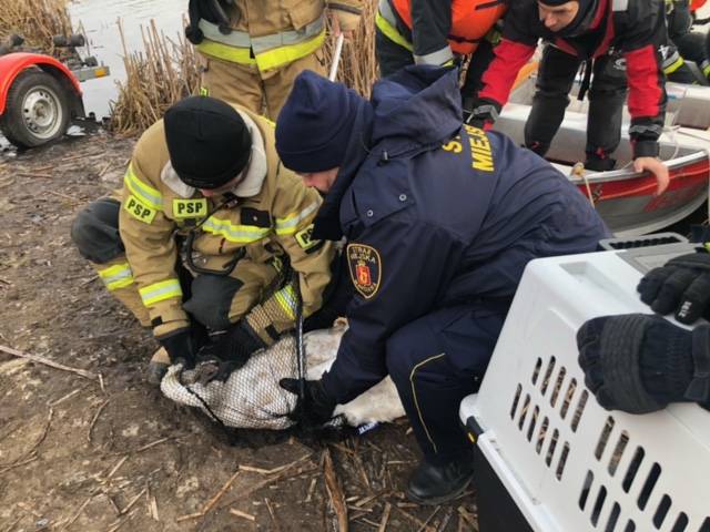 Zdjęcia Jeziorko przy Europejskiej - uratowany łabędź trafił do lecznicy - fotorelacja
